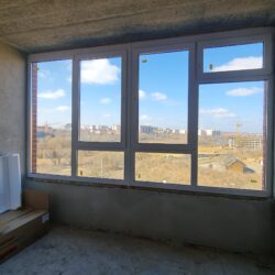 є велика лоджія з кухні з красивим панорамним виглядом на озеро;
